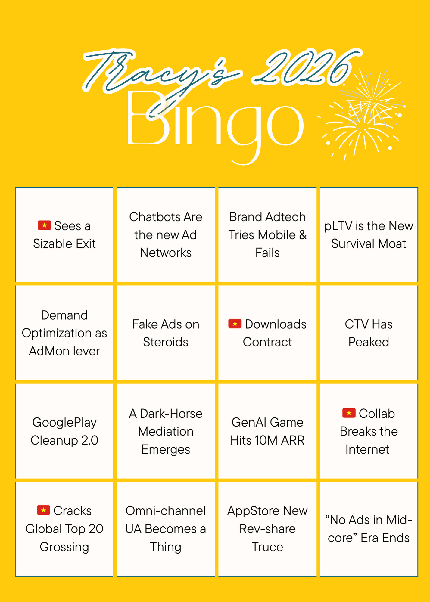 2026 Bingo Card - Tracy edition 🤪